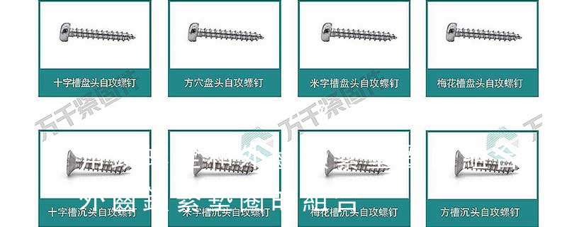 名稱: 1.機(jī)螺釘 2.自攻螺釘 3.鉆尾螺釘 4.墻板釘 5.纖維板釘 6.木螺釘7.六角木螺釘 8.不脫出螺釘 9.組合螺釘 10.微型螺釘 11.家具螺釘 12.電子螺釘 頭型: 1.六角頭(hexagon head) 2.六角頭法蘭面(hexagon head with fla
