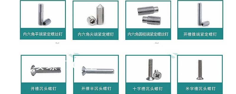 平杯)、半圓頭內(nèi)六角螺釘(圓杯)、十字槽盤頭機螺釘、十字槽沉頭機螺釘、十字槽大扁頭機螺釘、十字槽盤頭自攻釘、十字槽沉頭自攻釘、十字槽大扁頭自攻釘、全牙絲桿(牙條)、六角螺母、法蘭螺母、尼龍螺母、蓋型螺母、蝶型
