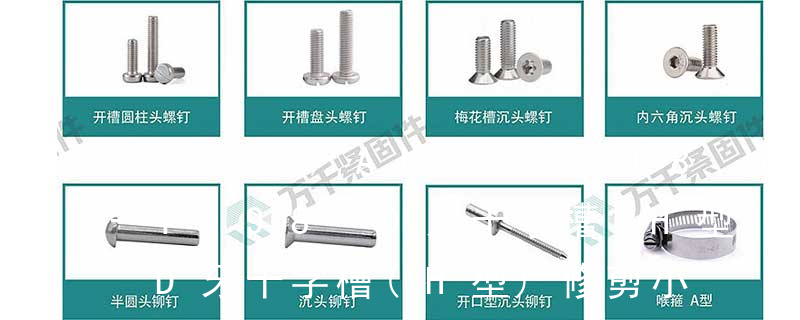 (鐵板牙自攻螺絲) B-2: Plastic Tapping Screw. (塑膠用,自攻螺絲) C: Wooden Screw : 木工螺絲 D: Drywall Screw :水泥墻螺絲 E: Self Drilling Screws鉆尾螺絲(不銹鋼鉆尾螺絲,復(fù)合材料鉆尾螺絲) F:膨脹螺絲,四片膨脹螺絲又