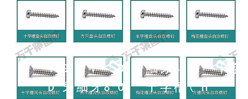 六角花形等;內(nèi)扳擰:一字槽、十字槽H型、十字槽Z型、十字槽F型、四方槽、復合槽、內(nèi)花鍵、內(nèi)六角花形、內(nèi)三角、內(nèi)六角、內(nèi)12角、離合器槽、六葉片型槽、高扭矩十字槽等。3、螺紋種類螺紋種類繁多,有自攻螺紋(